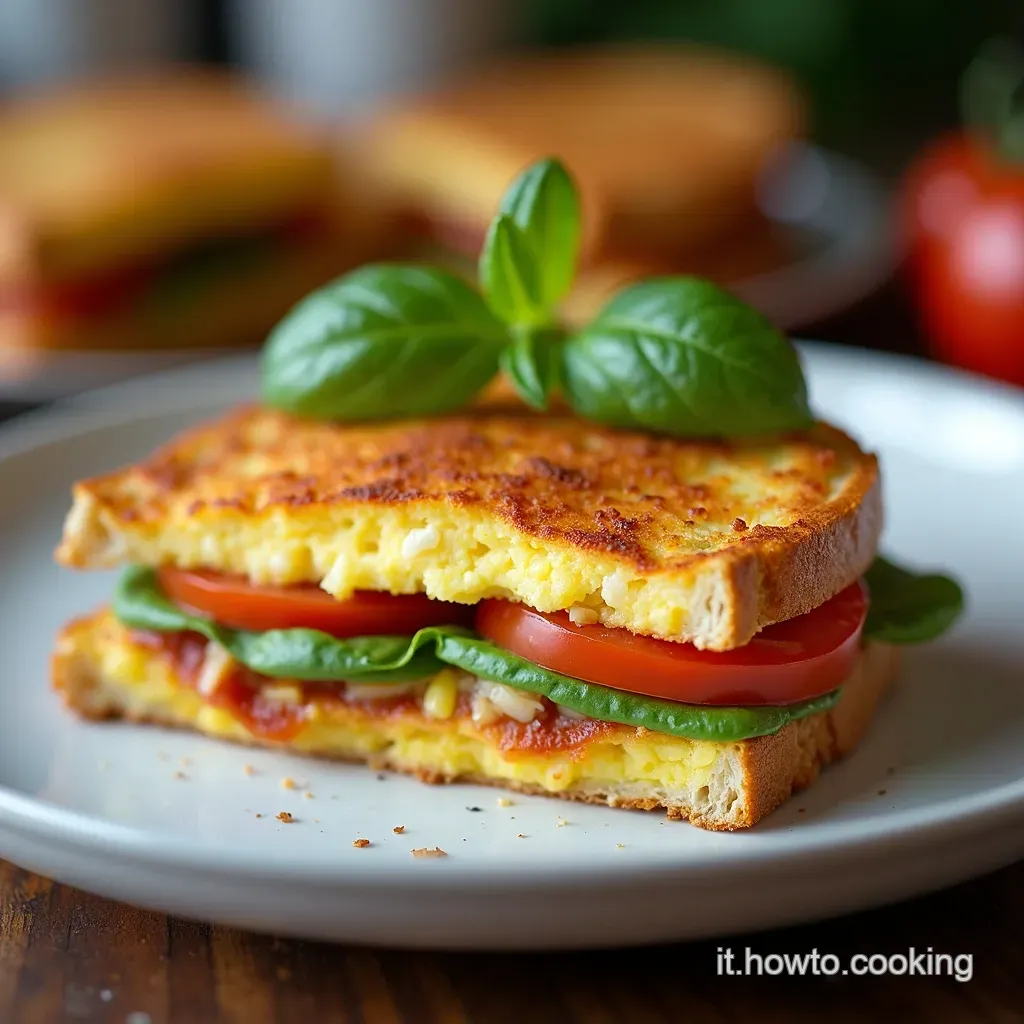 - Impiattamento: Non serve la tovaglia damascata, eh! Basta un piatto carino e un tovagliolo colorato. Tagliate il Frittata Sandwich a metà per farlo sembrare più invitante. Un rametto di basilico fresco non guasta mai!
