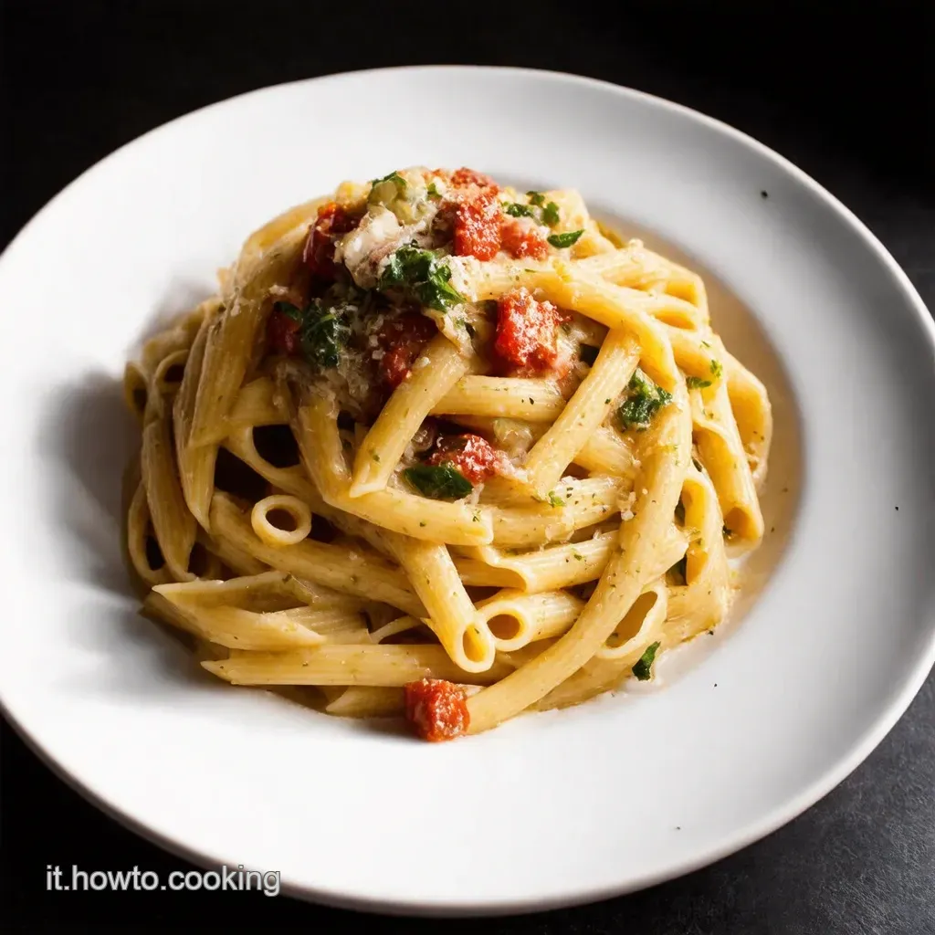 - Pasta Al Dente: Buttate 320g di pasta corta (penne rigate, rigatoni o casarecce) in acqua bollente salata. Cuocete al dente.