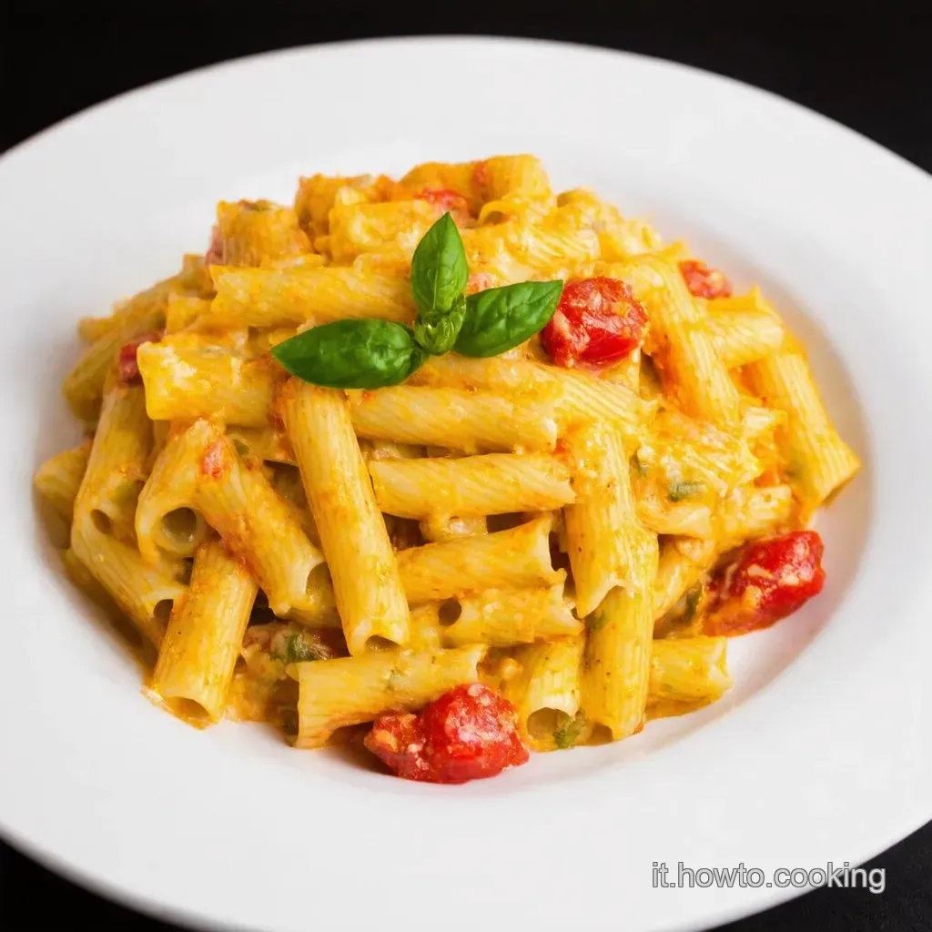 - Cuocere la pasta: Portate a ebollizione una pentola grande di acqua salata. Aggiungete 450g di pasta corta e cuocetela al dente per 10-12 minuti .