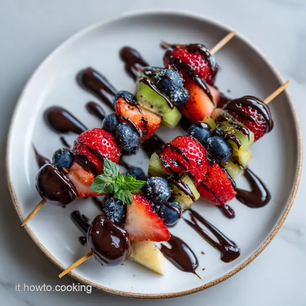 Spiedini Di Frutta Mista Con Salsa Al Cioccolato