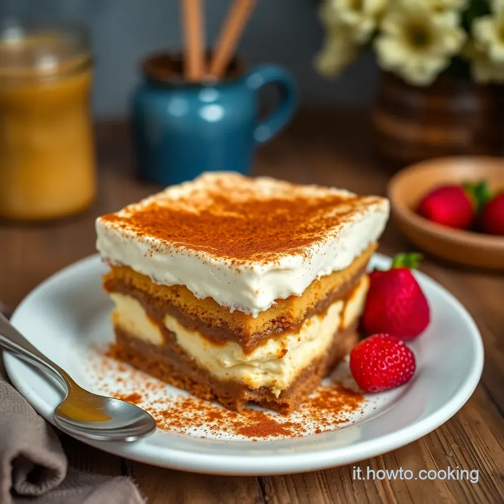 Hai ragione, il mascarpone è quasi magico! È un formaggio fresco cremosissimo, tipico del Nord Italia, fatto con panna di latte vaccino. Nel nostro tiramisù rivisitato, il mascarpone aggiunge una vellutata sofficità che ti farà dire "Mamma mia, che bontà!". Pensa al mascarpone come l'ingrediente segreto che trasforma un normale tiramisù in un'esperienza celestiale, un po' come la nonna che aggiunge quel pizzico di sale in più per rendere tutto perfetto. Certo che puoi! Anzi, se ti senti un vero "chef stellato", fare il mascarpone in casa può essere un'ottima idea. Ti darà un sapore ancora più autentico e la soddisfazione di aver creato qualcosa di speciale. Assicurati solo che sia bello denso e cremoso, come vuole la tradizione. Se lo compri, scegli un mascarpone di alta qualità; proprio come un buon vino, fa la differenza! Accidenti! Probabilmente hai lavorato troppo il mascarpone o non hai montato bene la panna. Ricorda, il mascarpone va incorporato delicatamente, "come se stessi cullando un bambino", per non smontarlo. E la panna deve essere ben fredda e montata a neve ferma. Un trucco? Metti il mascarpone in frigo per un'oretta prima di usarlo per compattarlo. La pazienza è la virtù dei forti, soprattutto in cucina! Assolutamente! Nessuno spreco di tiramisù è ammesso! Copri bene il tiramisù con pellicola trasparente (a contatto con la superficie per evitare che si secchi) e conservalo in frigorifero per massimo 2-3 giorni. Ricorda che il mascarpone è un formaggio fresco e va consumato in tempi brevi. Anche se, diciamocelo, è difficile che ne avanzi! Certo, anche se il tiramisù è un peccato di gola, si può alleggerire! Puoi sostituire parte del mascarpone con ricotta light, usare meno zucchero e optare per savoiardi integrali. L'amaretto ha calorie, puoi quindi diminuirne le dosi. Non sarà proprio come l'originale, ma comunque gustoso e meno calorico. Ricorda, l'importante è godersi la vita, anche con qualche piccolo strappo alla regola! Congelare il tiramisù con mascarpone è possibile, ma non è l'ideale. La consistenza del mascarpone potrebbe cambiare un po', diventando leggermente granulosa dopo lo scongelamento. Il sapore dovrebbe rimanere buono, ma la texture potrebbe risentirne. Se proprio devi, scongelalo lentamente in frigorifero. Personalmente, preferisco gustarmelo fresco, "così com'è", ma in caso di emergenza... un tentativo si può fare!Domande Frequenti sul Tiramisù del Nonno (Rivisitato con Mascarpone)